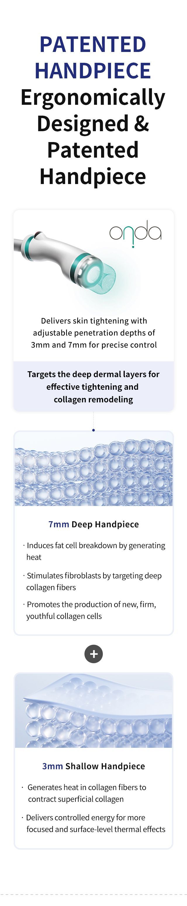 - ONDA handpiece glides over the skin, delivering deep, targeted energy
