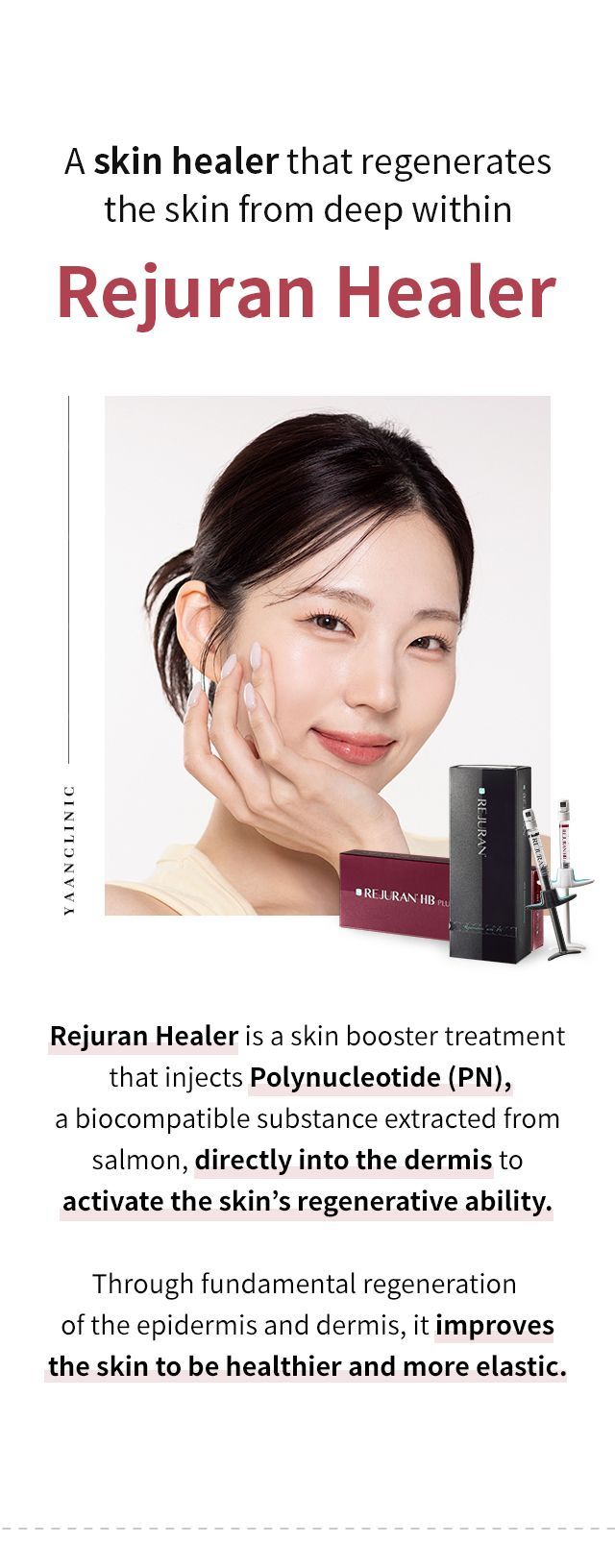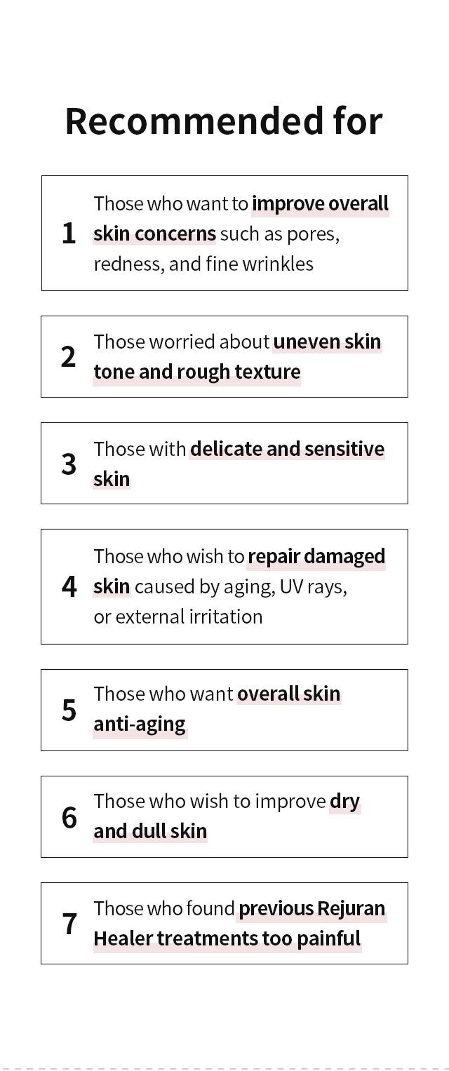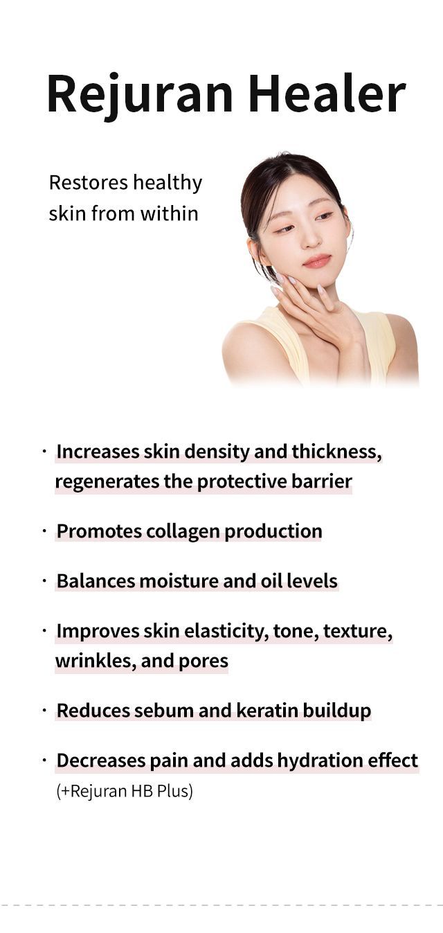 In Korea, this treatment is often referred to as Rejuran Healer and is especially popular for restoring tired, aging, or damaged skin.